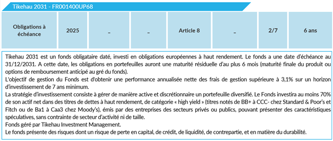 (Easybourse.com) Dans ce dossier, EasyBourse met en lumière sept fonds de Tikehau Capital, un acteur mondial de la gestion d?actifs fondé en 2004 par deux entrepreneurs de la finance. Depuis sa création, le Groupe a connu une forte croissance et poursuit son développement. A fin 2025, Le total des actifs sous gestion s?élève à 52,8 milliards d?euros et les fonds propres du groupe ressortent à 3,1 milliards d?euros.